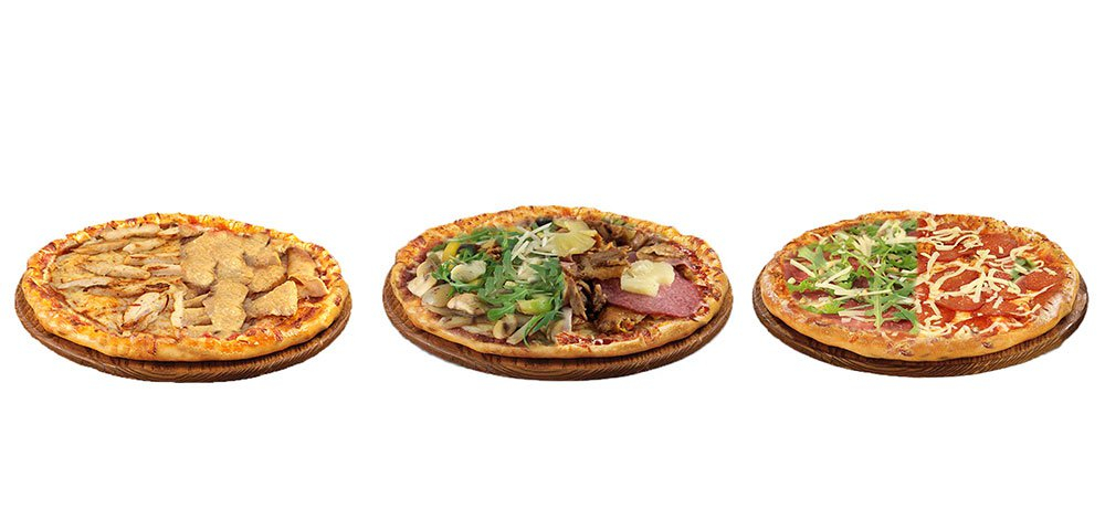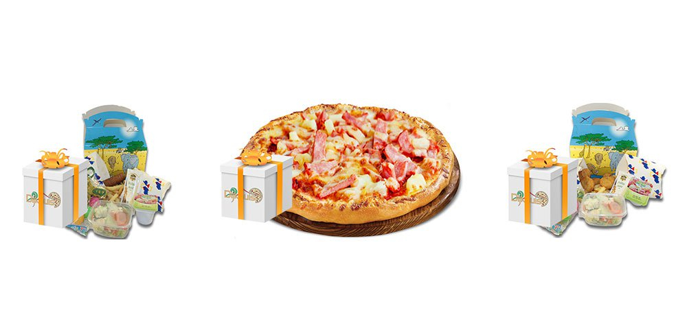 tomatensaus, kaas, salami, ham, spek, döner kip, döner, shoarma, kipfilet, en ananas